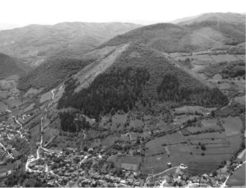 (插图17)波西尼亚太阳金字塔航拍图,传统考古学并不认为这座金字塔是由智慧生命建造的(也就是说他们不承认这是人造金字塔,而只是一座自然形成的山)。